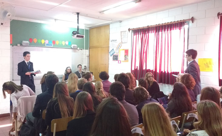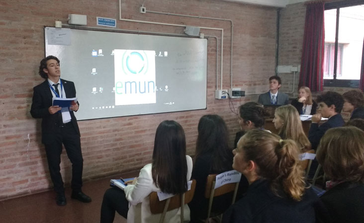 Bajo el lema “Equality of opportunities in a developing world” se realizó el modelo de Naciones Unidas EMUN organizado por ESSARP. La sede del encuentro fue el colegio St. Catherine’s Moorlands, donde nuestros delegados representaron a Estados Unidos e Israel. Luego de una intensa preparación que incluyó la visita a las embajadas de ambos países, desplegaron sus conocimientos de política internacional y sus habilidades para la negociación en torno a temas como la situación en Siria y la paz internacional. La actividad les permitió conocer el funcionamiento de la ONU y tomar conciencia de la importancia de la resolución pacífica de los conflictos globales.