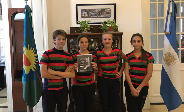 Alumnos de Middle 2 y de Senior School participaron en el World Speech Day con discursos sobre el tema “Thoughts for a Better World” (Ideas para un mundo mejor). El reciclaje, la ciencia y el valor de los pequeños gestos fueron algunas de las temáticas elegidas por nuestros representantes para este día internacional en el que oradores de cincuenta países del mundo – entre ellos Malasia, Estados Unidos, Nigeria, Irlanda, Perú, Alemania, Inglaterra, Malasia, Portugal, Haití, Mongolia, Indonesia y Argentina – hicieron oír su voz por un mundo mejor.