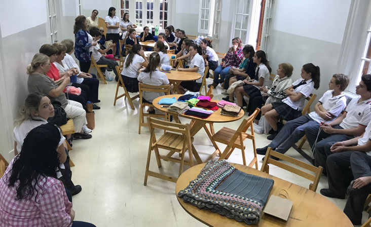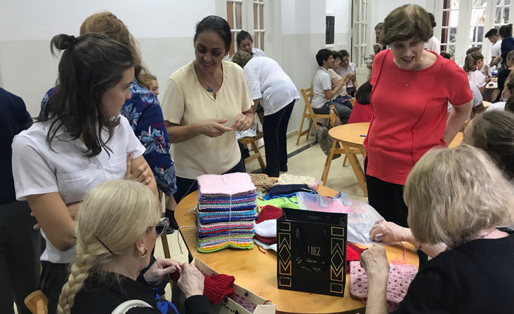 En el marco del Taller de Solidaridad y la Campaña Frío Cero de la Parroquia Nuestra Sra. de la Paz, nos han acompañado madres y abuelas voluntarias para tejer cuadrados de lana y coserlos entre sí para formar mantas que luego se distribuirán a personas en situación de calle. ¡Ha sido una hermosa tarde de encuentro y desarrollo he habilidades sensoriales!