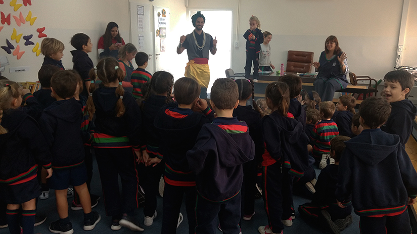 Mientras escuchaban un cuento en la Biblioteca, los alumnos de Junior 1 recibieron la visita sorpresa del genio de la lámpara mágica. Entre humo y misterio, el genio saludó a todos y les pidió que pensaran un deseo y lo anotaran. Chocolates, helado, libros y buenos deseos para sus familias fueron algunas de las cosas que escribieron entusiasmados.