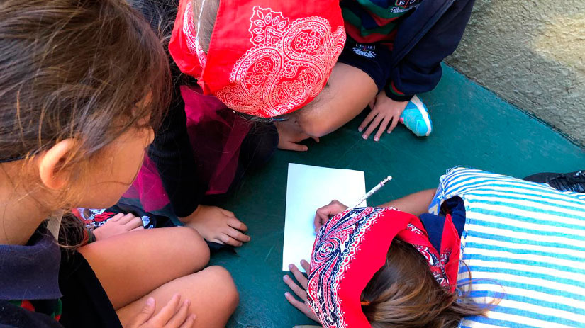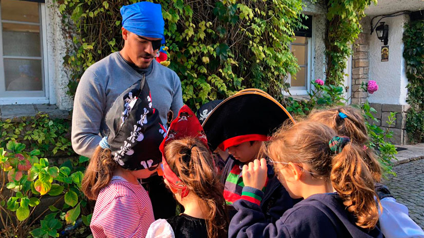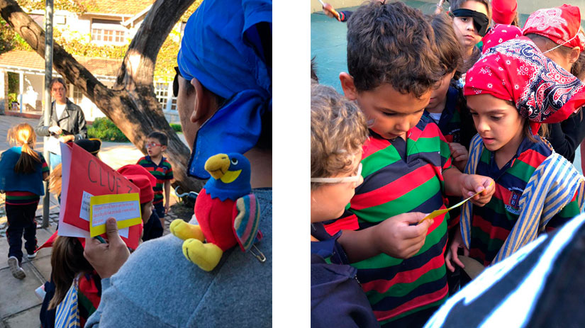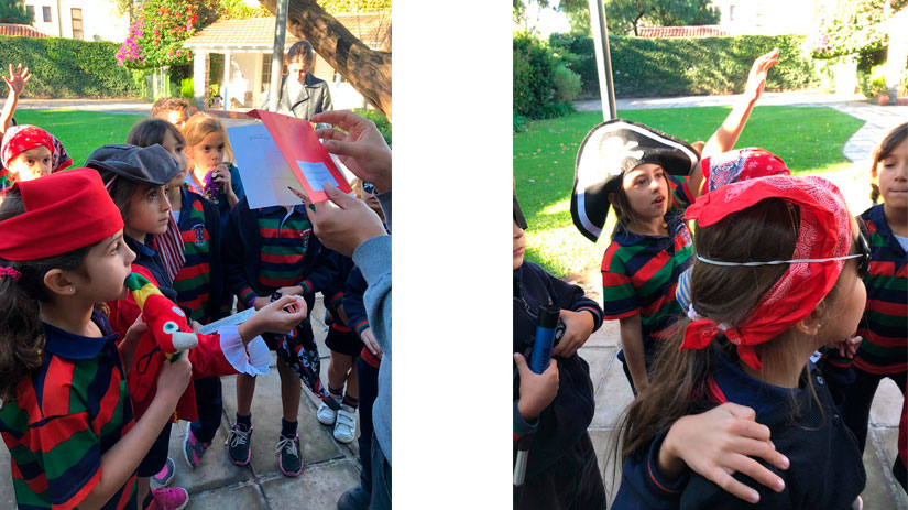 Los alumnos de Junior 2, tras las pistas para encontrar el tesoro escondido.