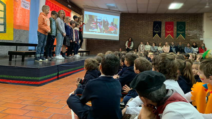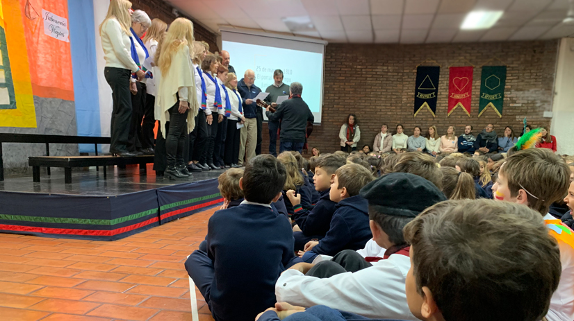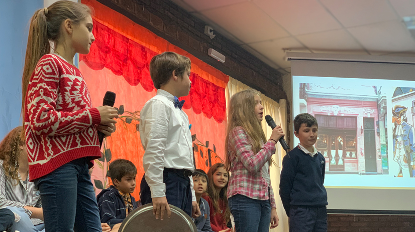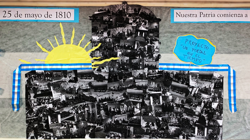 Como parte del proyecto “Un portal en el tiempo” los alumnos de Junior 5 realizaron una investigación sobre los acontecimientos del 25 de mayo de 1810. Se organizaron en grupos y buscaron información sobre las características de esa época: cómo eran el ambiente rural y urbano, la medicina, los transportes, el comercio, la comunicación, las casas típicas, los colegios y cuáles fueron los antecedentes históricos. En ese marco realizaron una visita al Museo de la Reconquista, donde conocieron más sobre las Invasiones Inglesas. El trabajo en equipos les permitió aprender sobre la importancia de aquel momento histórico, pero también intercambiar opiniones, descubrir las fortalezas de cada uno y otras formas de pensar y trabajar. Todo ese proceso quedó registrado en fotos que le dieron vida al Cabildo de nuestra cartelera.