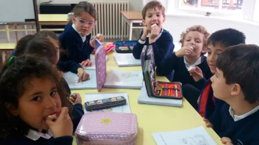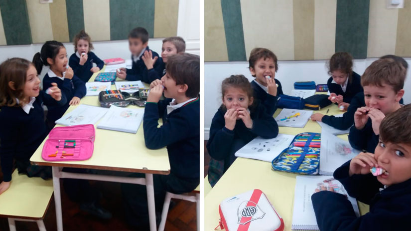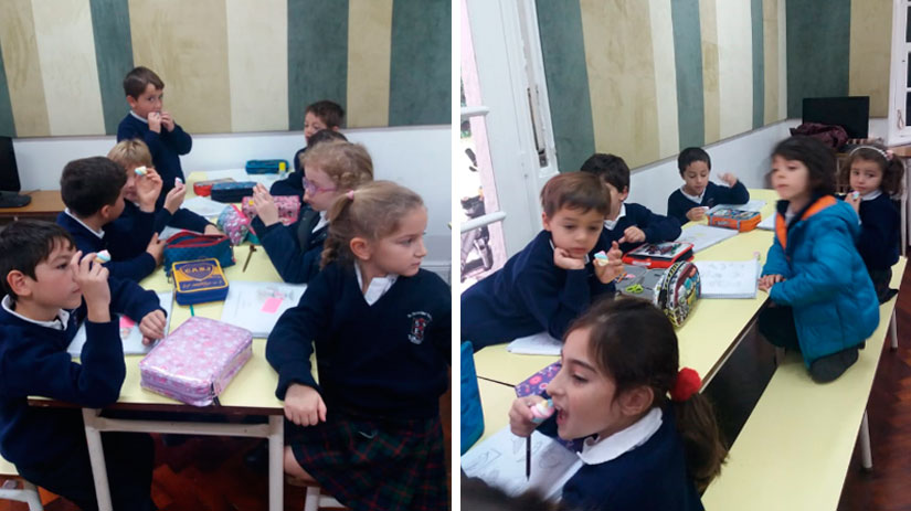 Los alumnos de Junior 1 utilizaron malvaviscos para dejar impresa la forma de sus dientes, analizarla y aprender sobre sus funciones.