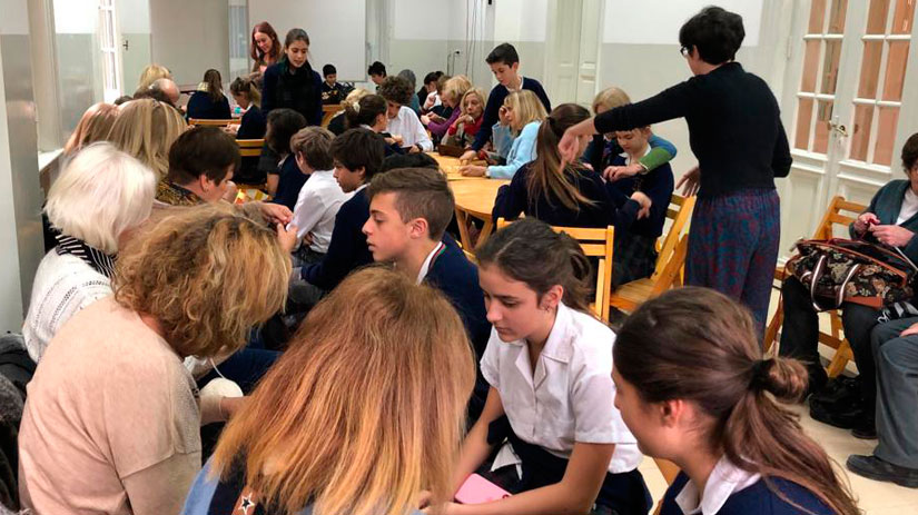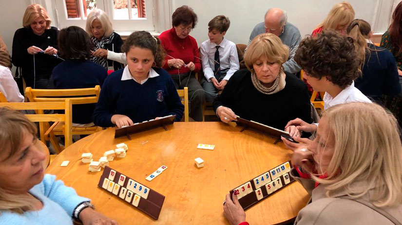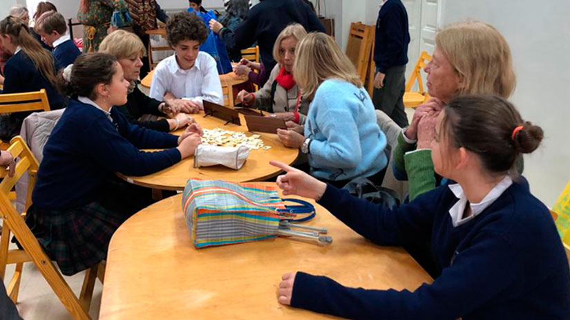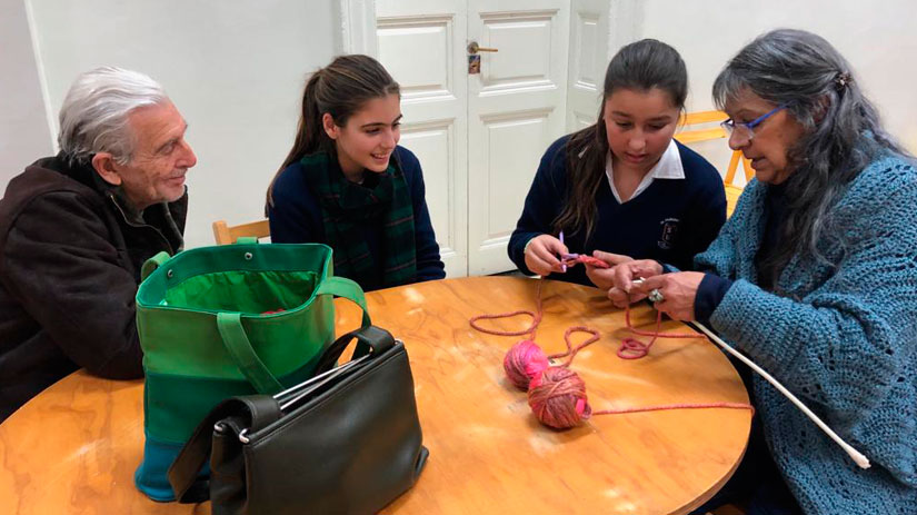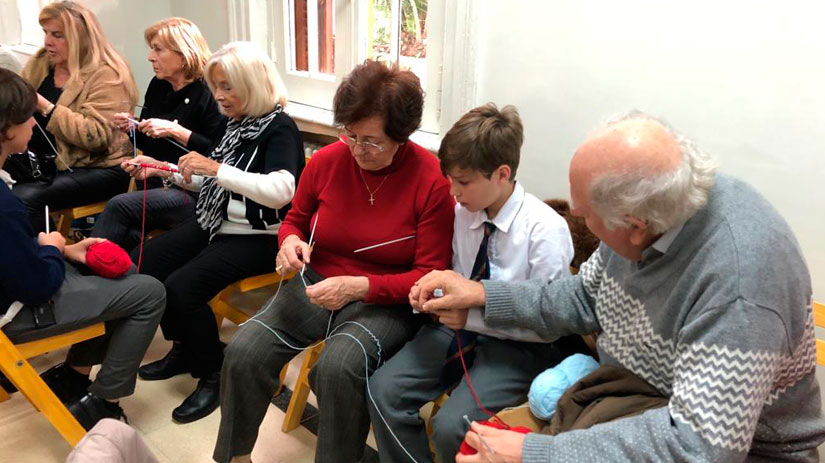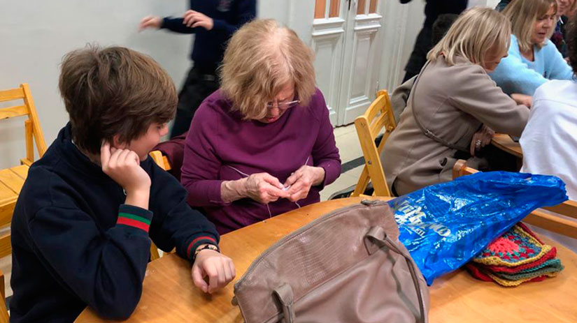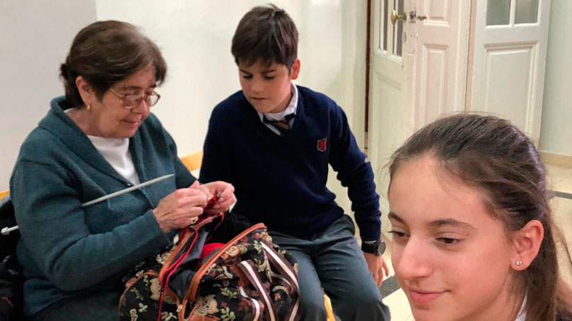 Los alumnos de Middle 1 convocaron a sus abuelos y tíos en el marco de la materia Construcción de la Ciudadanía y el Taller de Solidaridad para tejer mantas que luego serán entregadas por Senior 6 a las instituciones que hacen recorridas por el frío.