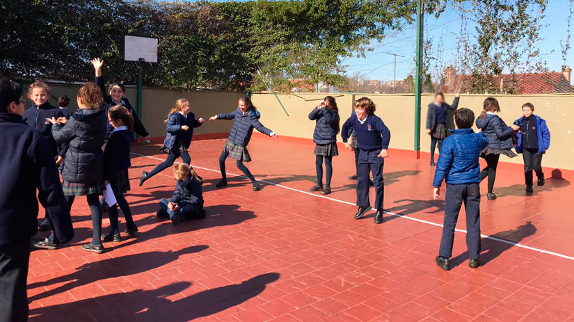 Existen muchas maneras de aprender los tiempos verbales, una de ellas es a través de juegos grupales. Los alumnos de Junior 5 salieron al patio con las maestras de Inglés y, mientras un grupo realizaba distintas acciones, otro grupo tenía 15 segundos para observarlos y memorizar lo que hacían. Después registraron las acciones por escrito, conjugadas en Past Continuous, y el grupo con más acciones anotadas fue el ganador.