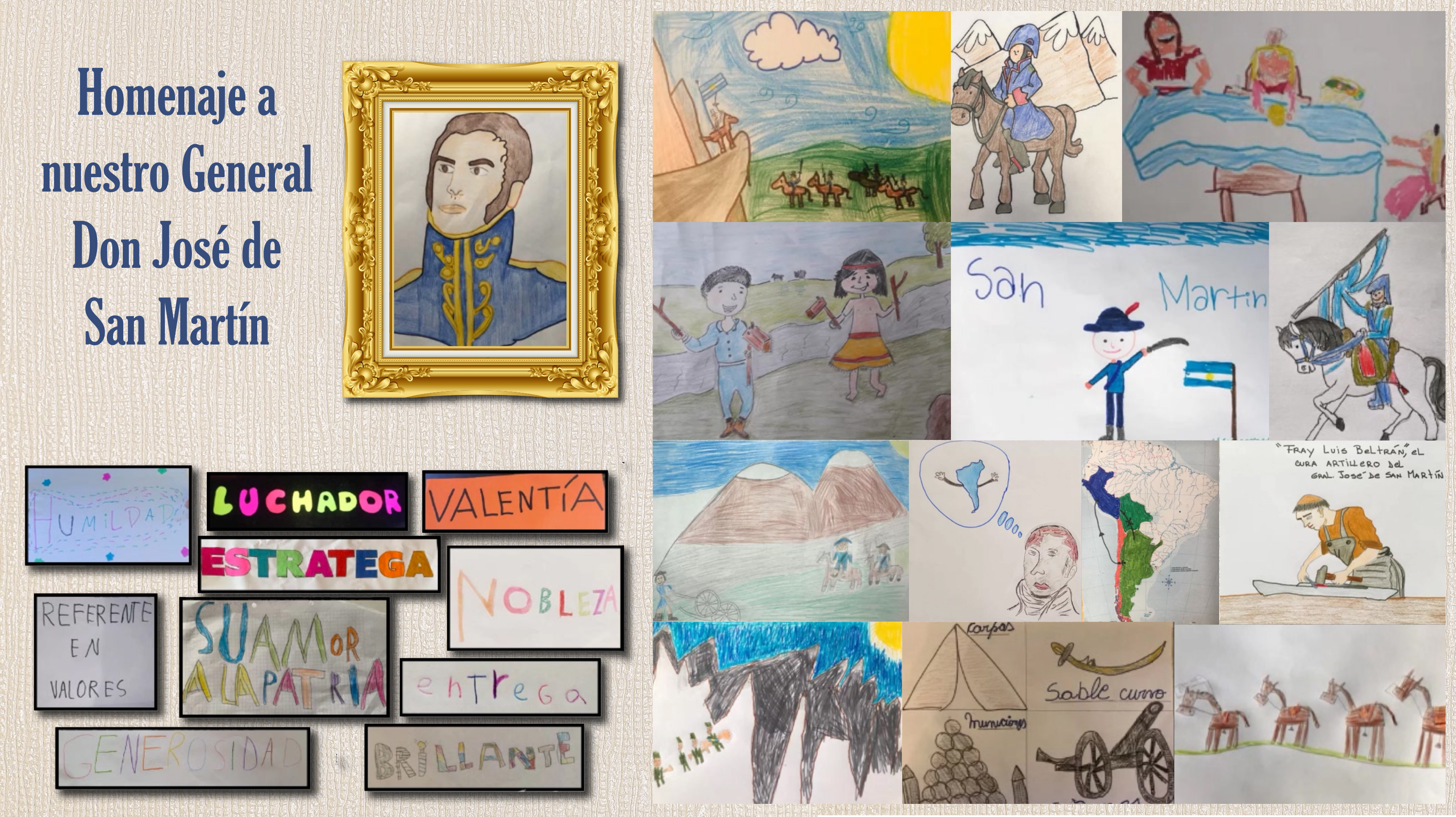 En homenaje al General Don José de San Martín, Junior 3 realizó un trabajo colaborativo sobre su vida y los valores que lo destacan que fue compartido con todas las familias durante el último Encuentro Patrio. "Y a vos, ¿qué actitudes de San Martín te gustaría imitar?", nos invitaron a pensar.