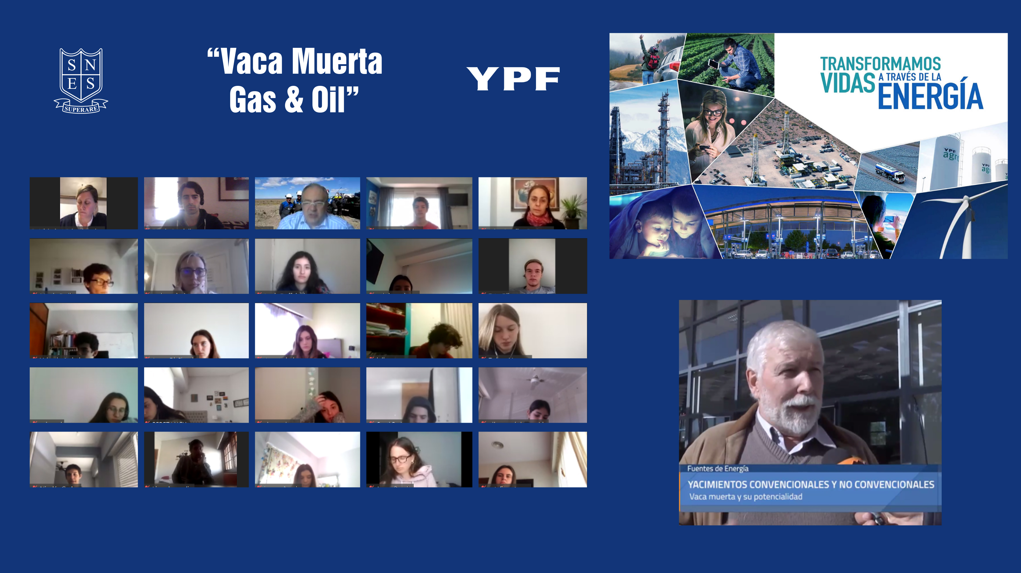 Los alumnos de Senior participaron de dos encuentros con el Ing. Juan Manuel Jasson, de YPF, como parte del “Proyecto Vaca Muerta”, en los que conversaron sobre las diferencias entre la extraccio´n convencional y no convencional, co´mo se hace un gasoducto, geopoli´tica, marco legal y el mercado internacional, entre otros temas. La charla con el especialista forma parte de un proyecto interdisciplinario de Geografi´a, Business Studies & Economics, en el que trabajan temas como escalas de los problemas ambientales, tiempos ecolo´gicos y tiempos econo´micos, desarrollo sustentable y avances tecnolo´gicos.